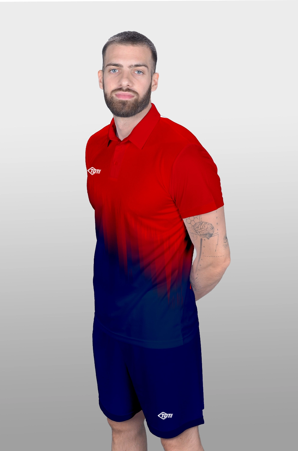 Rövid ujjú sport mez 3 gombbal, vagy cipzárral ellátott nyakpánt, gallérral ellátva
